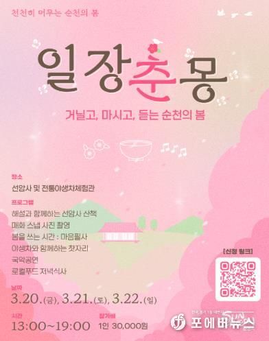 시 관계자는 “선암사의 봄 풍경과 야생차, 공연이 어우러진 감성적인 문화관광 프로그램을 정성껏 준비했다”며, “이번 프로그램이 일상에 지친 현대인들에게 쉼표(,)와 느낌표(!)가 되어, 순천에서의 하루가 오래도록 따뜻한 기억으로 남기를 바란다”고 말했다.