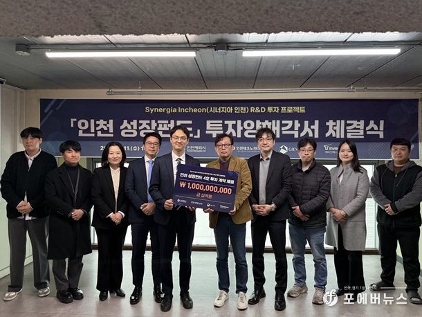 이번 투자계약은 지난해 신규로 추진된 인천의 유망 기업 의무투자 프로그램인 ‘Synergia Incheon(시너지아 인천) 연구개발(R·D) 투자 프로젝트’를 통해 진행됐다. 이 사업은‘인천성장펀드 4호’의 전략적 투자 지원 프로그램으로, 최종 선정 기업에 10억 원의 직접 투자와 함께 중소벤처기업부 ‘스케일업 팁스(Scale-up TIPS) 연구개발(R·D) 프로그램’ 추천을 연계해 지원한다.