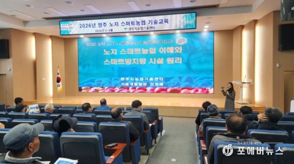 [ 포에버뉴스 사공선 기자 ] 영주시는 지난 12일 농업기술센터 대교육관에서 ‘2026년 영주 노지 스마트농업 기술교육’ 개강식을 열고 본격적인 교육 운영에 들어갔다.