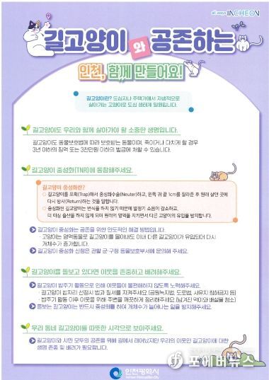 [ 포에버뉴스 김경순 기자 ] 인천광역시 계양구는 길고양이로 인한 소음, 쓰레기봉투 훼손 등으로 발생하는 주민 갈등을 완화하고 동물 학대를 예방하기 위해 2026년 길고양이 중성화 수술(TNR) 지원사업을 추진한다고 밝혔다.
