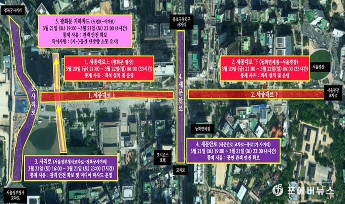 [ 포에버뉴스 김경순 기자 ] 서울시는 3월 21일 광화문 일대에서 열리는 BTS 컴백 행사에 국내외 관람객이 대규모로 집중될 것으로 예상되는 만큼, 행사장 주변과 지하철 역사를 중심으로 종합 교통대책을 추진한다고 밝혔다. 당일 지하철, 버스 등 대중교통을 이용해야 할 경우 무정차, 우회 운행 등 관련 정보를 확인하는 것이 좋다.