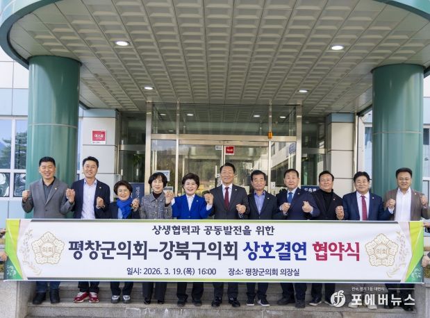 [ 포에버뉴스 김경순 기자 ] 강북구의회는 지난 3월 19일 평창군의회 의장실에서 양 의회 간 우호 증진 및 상호 협력 강화를 위한 상호결연 협약을 체결했다.