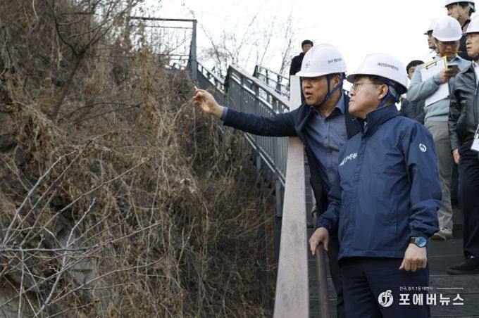 [ 포에버뉴스 김경순 기자 ] 진교훈 서울 강서구청장이 20일 해빙기 안전사고 예방을 위해 직접 급경사지 안전점검에 나섰다.