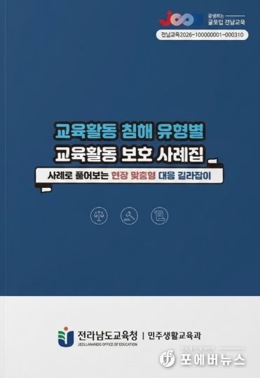 [ 포에버뉴스 오명숙 기자 ] 전라남도교육청(교육감 김대중)은 교육활동 침해로 어려움을 겪는 교원을 보호하고, 학교 현장의 예방·대응 역량을 높이기 위해 ‘교육활동 침해 유형별 교육활동 보호 사례집’을 발간해 도내 각급학교에 배부했다고 23일 밝혔다.