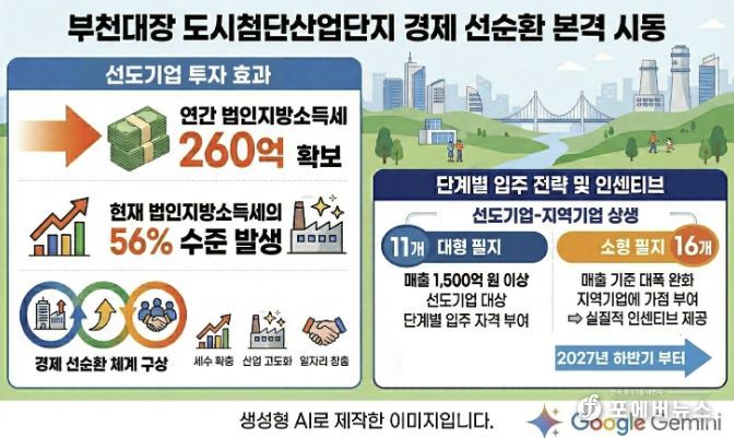 부천시는 위 기업들의 입주로 연간 약 260억 원 규모의 법인지방소득세가 새로 발생할 것으로 보고 있다. 이는 현재 시 전체 법인지방소득세의 56% 수준에 해당한다. 시는 확보한 세수를 노후 공업지역 고도화와 지역기업 지원 예산에 재투입해, ‘세수 확충-산업 고도화-일자리 창출’로 이어지는 경제 선순환 체계를 만든다는 구상이다.