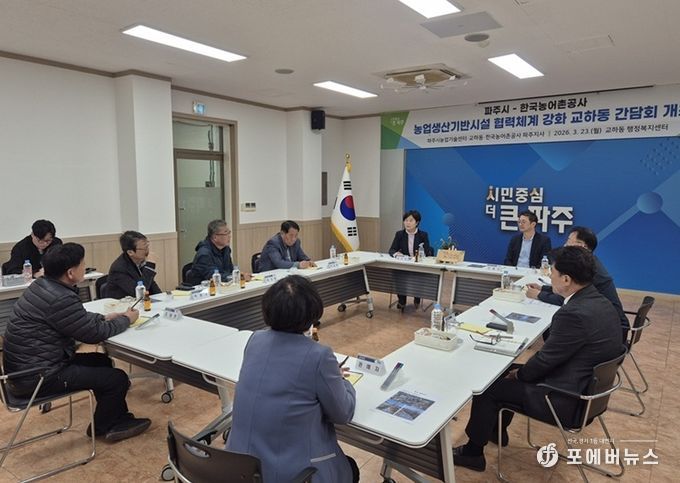 [ 포에버뉴스 김경순 기자 ] 파주시농업기술센터는 지난 23일 교하동 행정복지센터에서 한국농어촌공사 파주지사와 함께 농업생산기반시설의 효율적 관리를 위한 협력 방안을 논의하는 간담회를 개최했다.