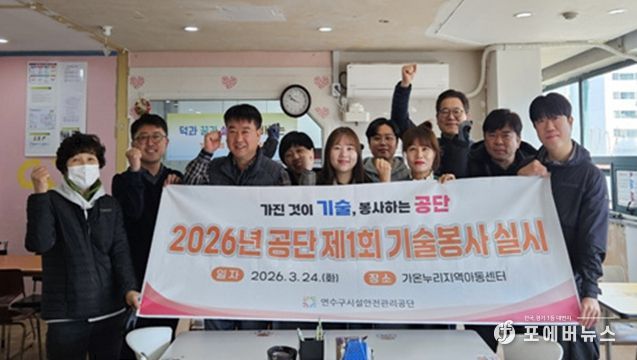 공단은 24일 연수동 가온누리지역아동센터에서 ‘2026년 제1회 기술봉사’를 실시하고, 아동 돌봄공간의 조도 개선과 전기 안전 강화 작업을 진행했다고 밝혔다.