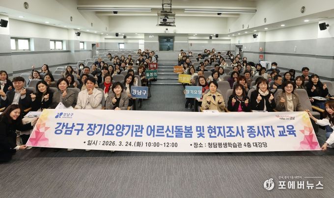 [ 포에버뉴스 김경순 기자 ] 꿈이 모이는 도시, 미래를 그리는 강남구(구청장 조성명)가 3월 24일 청담평생학습관에서 관내 재가장기요양기관장과 종사자 130여 명이 참석한 가운데 ‘2026년 장기요양기관 어르신 돌봄 및 부당청구 예방 교육’을 실시했다.