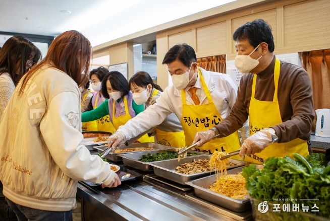 [ 포에버뉴스 김경순 기자 ] 서울 동대문구 경희대 정문 옆 연화사 공양간에 점심시간을 앞두고 대학생들이 하나둘 모여들었다. 수업을 마친 학생들이 줄을 서자 사찰 안은 금세 북적였다. 스님들과 자원봉사자들이 분주히 음식을 나르고, 공양간 앞에서는 학생들끼리 “오늘 메뉴가 뭐냐”며 웃음 섞인 대화를 주고받았다. 그 줄 앞에 이필형 동대문구청장도 섰다. 학생들에게 직접 음식을 건네며 “밥 잘 챙겨 먹고, 학업과 미래 준비도 힘내라”고 말을 건넸다. 이 구청장은 연화사 ‘청년밥心’ 현장에서 배식자로 참여해 대학생들을 격려했다.