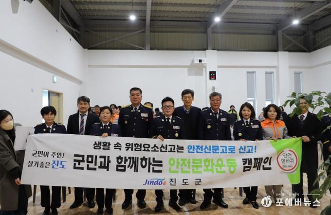 한편, 진도군은 앞으로도 군민의 목소리를 군정에 적극 반영하기 위해 안전 점검의 날 운동(캠페인), 안전신문고 활용 홍보 등 안전 문화 활동을 지속적으로 추진할 계획이다.