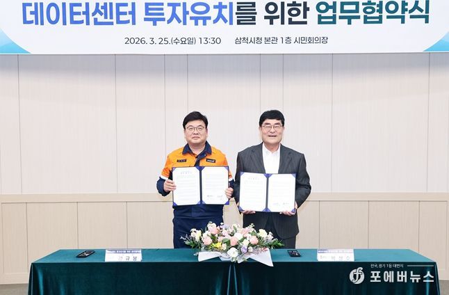 [ 포에버뉴스 사공선 기자 ] 삼척시와 삼척블루파워는 25일 삼척시청 시민회의장에서 “데이터센터 투자유치를 위한 업무협약(MOU)”을 체결했다.