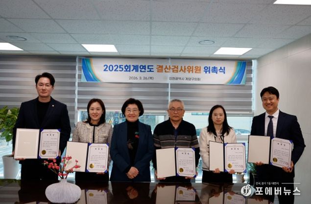 [ 포에버뉴스 김경순 기자 ] 인천 계양구의회는 지난 26일 2025회계연도 결산검사위원으로 선임된 5명에게 위촉장을 수여했다.