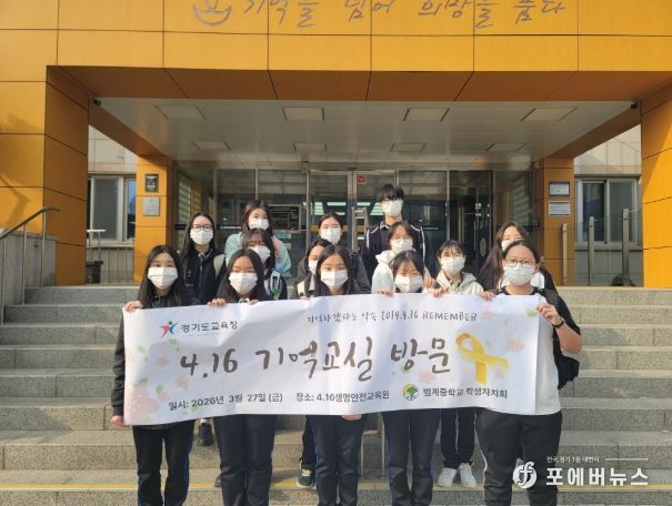 [ 포에버뉴스 김경순 기자 ] 안양 범계중학교(교장 박경숙) 학생자치회 학생 20여 명은 3월 27일에 세월호 참사의 교훈을 되새기고 생명 존중 문화를 확산하기 위해 경기도교육청 4.16생명안전교육원(안산시 단원구 소재)을 방문했다. 이번 방문은 매년 범계중학교에서 진행되는 ‘국민 안전의 날’ 행사 진행에 앞서 학생자치회가 주도적으로 기획했다. 12년이라는 시간이 지나 학생들이 ‘세월호 사건’을 잘 체감하지 못하는 것을 인식하고 이를 먼저 느끼고 알리고자 한 것이다.