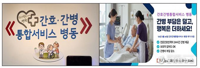 병실에 보호자나 간병인이 상주하지 않아도 전문 간호인력이 간호와 간병을 함께 제공하는 `간호․간병통합서비스'를 통해 환자는 체계적이고 안전한 입원서비스를, 보호자는 간병으로 인한 심리·경제적 부담을 덜수 있다.