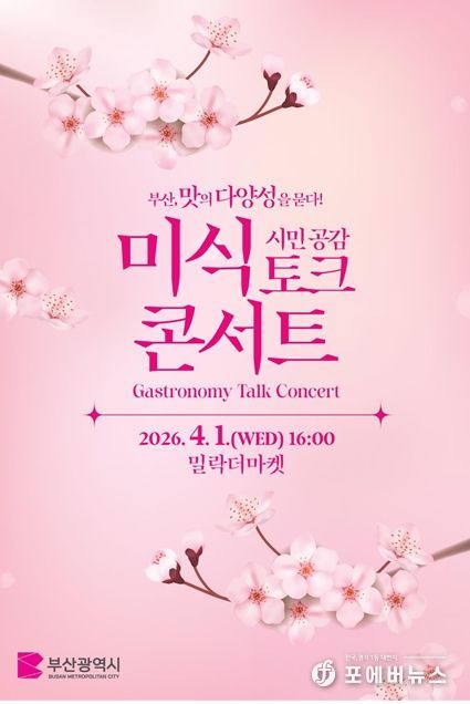 [ 포에버뉴스 사공선 기자 ] 부산시는 오늘(1일) 오후 4시 밀락더마켓에서 '부산, 맛의 다양성을 묻다!' 시민 공감미식 토크 콘서트를 개최해 2026년 미식관광 정책 방향을 시민과 공유한다고 밝혔다.