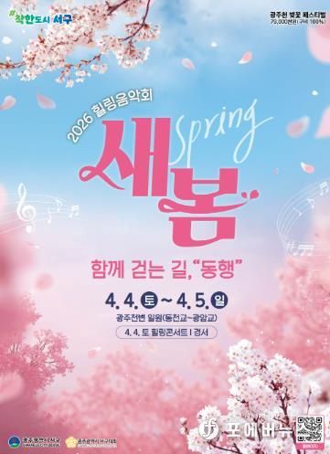 [ 포에버뉴스 오명숙 기자 ] 광주광역시 서구가 완연한 봄을 맞아 오는 4일과 5일 광주천변 (광천동~유덕동 광암교) 일원에서 ‘제4회 힐링음악회 새봄’을 개최한다.