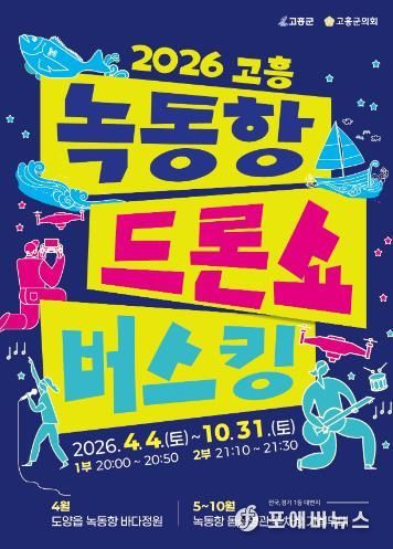 [ 포에버뉴스 오명숙 기자 ] 고흥군은 4월 4일부터 10월 31일까지 매주 토요일 저녁 8시, 녹동항 바다정원 일원에서 ‘2026 고흥 녹동항 드론쇼 버스킹’ 공연을 개최한다고 밝혔다.