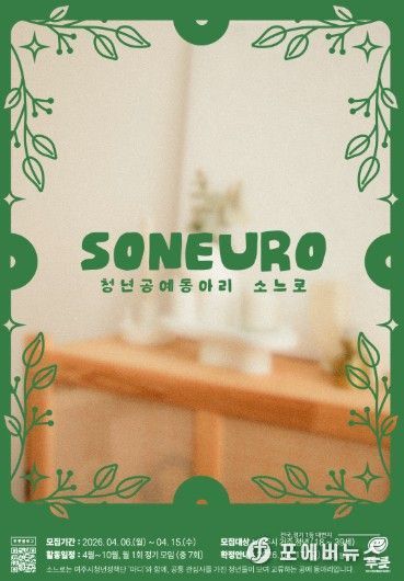 [ 포에버뉴스 김경순 기자 ] 여주시청년활동지원센터 푸릇은 오는 4월 청년공예동아리 'soneuro(소느로)' 참여자를 모집한다고 밝혔다.