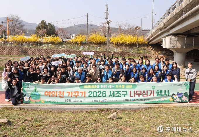 [ 포에버뉴스 김경순 기자 ] 서울 서초구가 SCL그룹과 함께 2일 여의천 새원교 인근에서 ‘탄소중립 실천 문화 확산을 위한 나무심기’ 행사를 열었다.