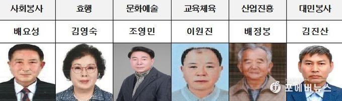 이어 교육체육상에는 남동구체육회 그라운드골프협회장으로서 탁월한 리더십을 발휘, 각종 대외 수상 및 회원 화합에 기여한 ‘이원진’님, 산업진흥상에는 지역특화 고품질의 ‘남동배’ 생산의 초석 마련 및 후계농 양성을 통한 지역 농업 발전에 기여한 ‘배정봉’님, 대민봉사상에는 만수6동 예비군 동대장으로서 예비군 작전과 교육훈련 성과를 극대화하여 군에 대한 신뢰 제고 및 지역 내 안보의식 함양에 헌신한 ‘김진산’님이 선정됐다.