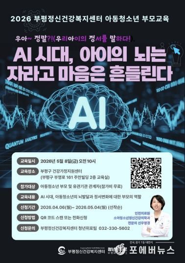 교육은 ▲AI 시대 아동·청소년의 뇌 발달과 정서 변화에 대한 부모의 역할 ▲정신건강 문제에 대한 효과적인 대응 방안 ▲청소년기 뇌 발달과 정신건강의 중요성에 대한 이해 증진 등을 내용으로 진행된다.