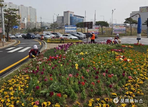 시는 주요 교통섬 6개소와 대형 화분 등에 봄꽃을 배치해 운전자와 보행자 모두가 봄의 정취를 느낄 수 있도록 했다.