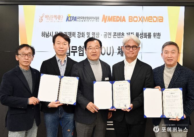 [ 포에버뉴스 김경순 기자 ] 하남문화재단이 4월 7일 (사)한국방송영상제작사협회(KIPA), ㈜앤미디어, ㈜박스미디어와 각각 업무협약(MOU)을 체결했다. 이번 협약식에는 이현재 하남문화재단 이사장, 이교욱 대표이사를 비롯한 각 기관 관계자들이 참석했다.