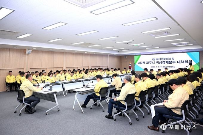 [ 포에버뉴스 김경순 기자 ] 파주시는 지난 8일 ‘제2차 파주시 비상경제본부 대책회의’를 개최해, 중동 정세에 따른 고유가와 지역 경기 침체에 대응하기 위한 분야별 추진 상황을 점검하고 대응 방안을 논의했다.