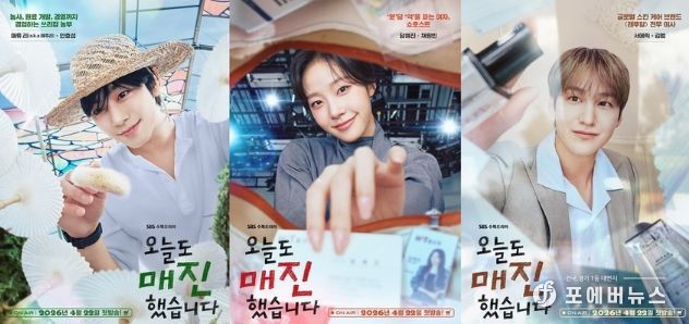 오는 22일(수) 첫 방송될 SBS 새 수목드라마 ‘오늘도 매진했습니다’(연출 안종연/ 극본 진승희/ 제작 스튜디오S, 비욘드제이, 슬링샷 스튜디오)가 매튜 리(안효섭 분)와 담예진(채원빈 분), 서에릭(김범 분)의 독보적인 개성을 담아낸 캐릭터 포스터를 공개해 관심을 집중시키고 있다.