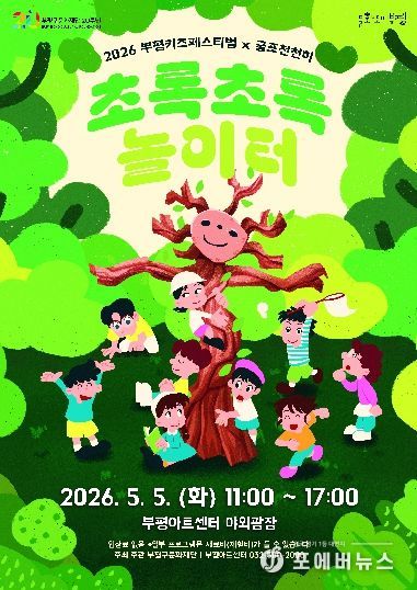 [ 포에버뉴스 김경순 기자 ] 부평구문화재단은 어린이날인 5월 5일 부평아트센터 야외광장과 잔디마당에서 ‘2026 부평키즈페스티벌 × 굴포천천히’의 일환으로 ‘초록초록 놀이터’를 개최한다.