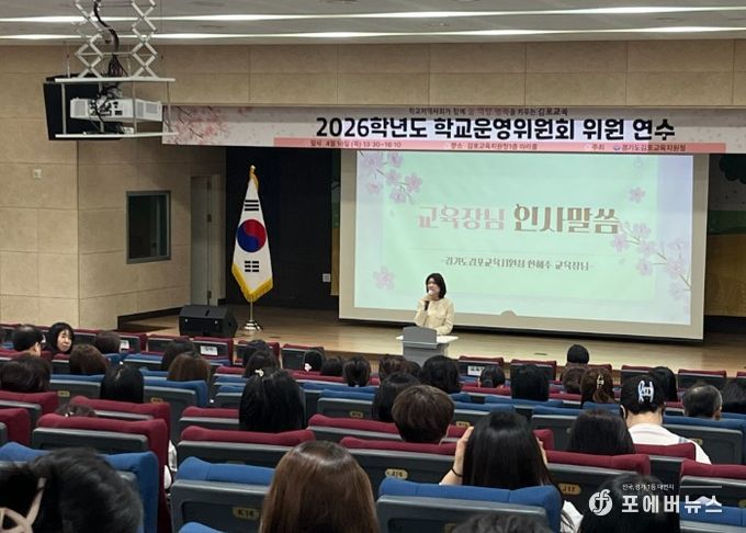 [ 포에버뉴스 김경순 기자 ] 경기도김포교육지원청은 4월 16일 아라홀에서 초·중·고 및 특수학교 학교운영위원회 학부모위원과 지역위원을 대상으로 ‘2026 학교운영위원회 위원 연수’를 실시했다.