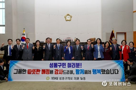 14명의 의원들은 지난 4년간의 의정활동에 아낌없는 성원을 보내준 성동구민에게 깊은 감사를 전하고, 제9대 의회의 임기가 끝나도 구민의 행복과 성동구의 발전을 위해 기꺼이 힘을 보태겠다고 다짐했다.