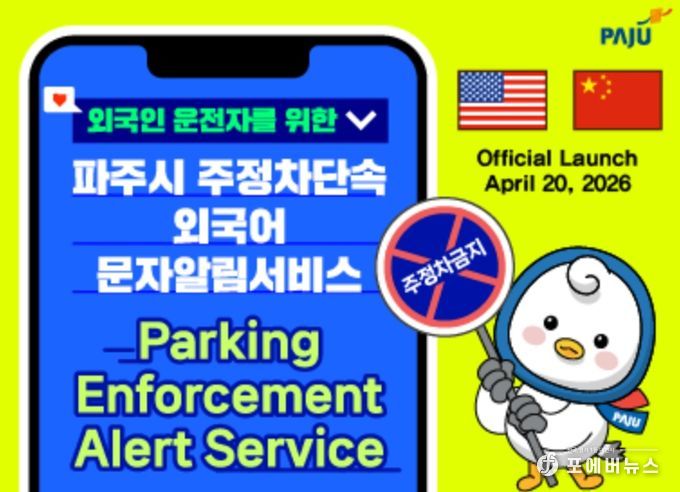 [ 포에버뉴스 김경순 기자 ] 파주시는 4월 20일부터 외국인 운전자를 대상으로 한 ‘주정차 단속 외국어 문자 알림 서비스’를 시행한다.