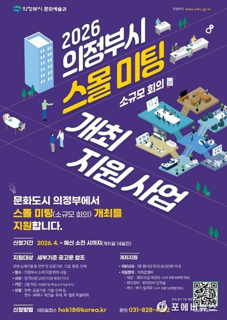 [ 포에버뉴스 김경순 기자 ] 의정부시는 관외에 소재지를 둔 기관 및 단체 등을 대상으로 ‘2026 의정부시 스몰미팅(소규모 회의) 개최 지원사업’을 추진한다.