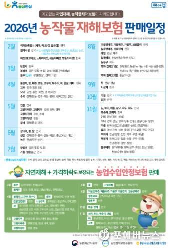 4월부터 벼·대파·고추 등을 시작으로 품목별로 순차 가입이 가능하며, 가입을 바라는 농업인은 가까운 농·축협이나 원예농협에 신청할 수 있다.