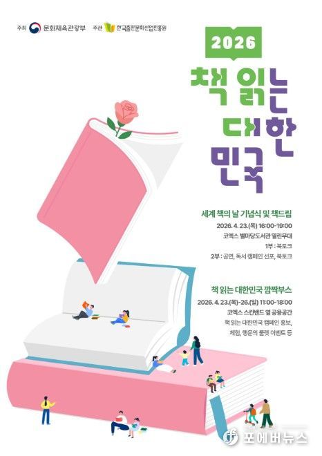 [ 포에버뉴스 김경순 기자 ] 문화체육관광부는 한국출판문화산업진흥원, (재)책읽는사회문화재단과 함께 4월 23일 오후 4시, 서울 코엑스 별마당도서관에서 대국민 독서 캠페인 ‘2026 책 읽는 대한민국’의 시작을 선포하고 캠페인을 본격적으로 추진한다. ‘책 읽는 대한민국’은 인공지능(AI) 시대에 국민의 생각하는 힘을 기르고, 지역 곳곳에 ‘일상 속 책 읽는 즐거움’을 확산하기 위해 마련한 캠페인이다. 최휘영 장관은 캠페인 선포식을 찾아 ‘책 읽는 즐거움’ 확산에 앞장선다.