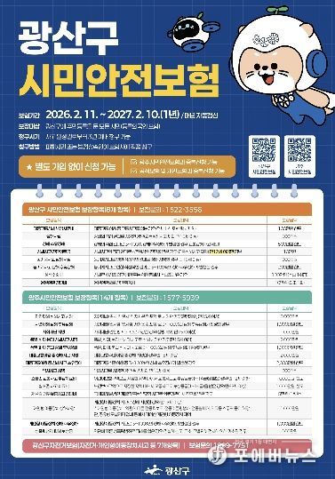 광산구 시민안전보험은 등록 외국인을 포함해 광산구에 주민등록을 둔 모든 시민이 별도의 가입 절차 없이 자동 가입된다. 보험료는 전액 광산구가 부담한다.