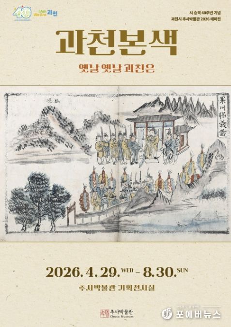 [ 포에버뉴스 김경순 기자 ] 과천시 추사박물관은 시 승격 40주년을 기념하여 ‘2026 테마전 '과천본색–옛날 옛날 과천은'’을 개최한다고 밝혔다. 이번 전시는 4월 29일 오후 3시 개막식을 시작으로 8월 30일까지 추사박물관 기획전시실에서 진행된다.