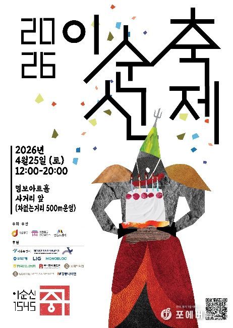 서울 중구는 오는 25일(토) 낮 12시부터 저녁 8시까지 충무공 이순신 생가터 인근 명보아트홀 사거리 일원에서 ‘2026 이순신 축제’를 개최한다. 지난해 첫 개최로 큰 호응을 얻고, 올해는 ‘이순신의 생일파티’콘셉트로 돌아왔다. 오는 28일은 충무공 이순신 탄신일 481주년이다.