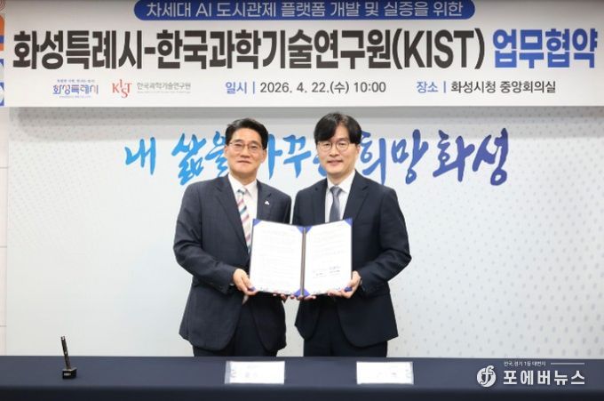 [ 포에버뉴스 김경순 기자 ] 화성특례시는 도시상태정의 기반의 AI 도시관제 체계로의 전환에 본격 착수했다. 시는 22일 한국과학기술연구원(KIST)과 ‘차세대 AI 도시관제 플랫폼 개발 및 실증’을 위한 업무협약(MOU)을 체결했다.