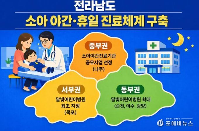 정광선 전남도 보건복지국장은 “아이를 키우는 부모 입장에서 가장 걱정되는 순간이 밤에 아플 때인데, 걱정을 조금이나마 덜어드리게 됐다”며 “앞으로도 도민이 체감할 소아 진료 환경을 지속해서 강화하겠다”고 말했다.