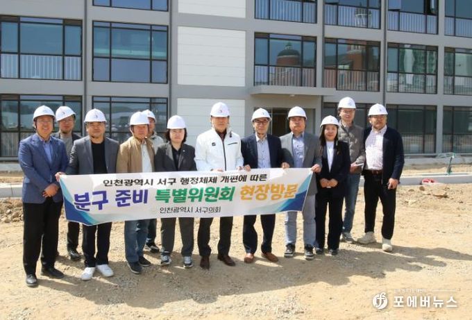 [ 포에버뉴스 김경순 기자 ] 인천 서구의회 '행정체제 개편에 따른 분구추진 특별위원회'는 23일, 검단구 출범을 대비해 조성 중인 검단구 임시청사(서구 당하동 1325 일원)를 방문하여 시설 현황과 행정 준비 상황을 점검했다.