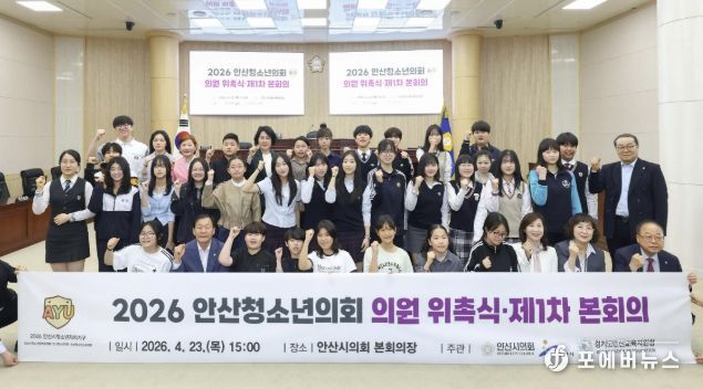 [ 포에버뉴스 김경순 기자 ] 안산청소년의회가 지난 23일 열린 ‘2026 안산청소년의회 의원 위촉식’과 ‘안산청소년의회 제1차 본회의’를 시작으로 본격적인 활동에 들어갔다.