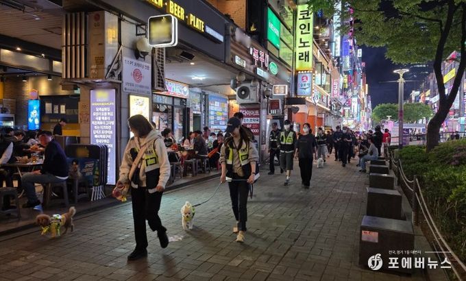 [ 포에버뉴스 김경순 기자 ] 안양시 반려견순찰대 ‘양반견’이 지난 23일 저녁 안양동안경찰서와 함께 동안구 일대에서 야간 합동순찰을 실시했다고 24일 밝혔다.