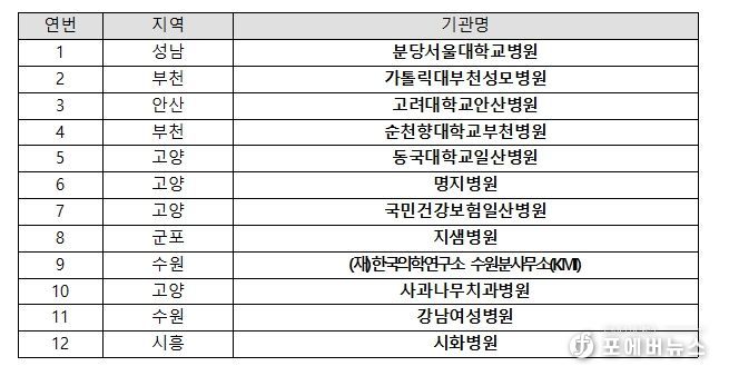 대표단에는 분당서울대학교병원, 가톨릭대학교부천성모병원, 고려대학교안산병원, 순천향대학교부천병원, 동국대학교일산병원, 명지병원, 국민건강보험일산병원, 지샘병원, (재)한국의학연구소(KMI) 수원분사무소, 사과나무치과병원, 강남여성병원, 시화병원 등 도내 의료기관 12개소가 참여했다.