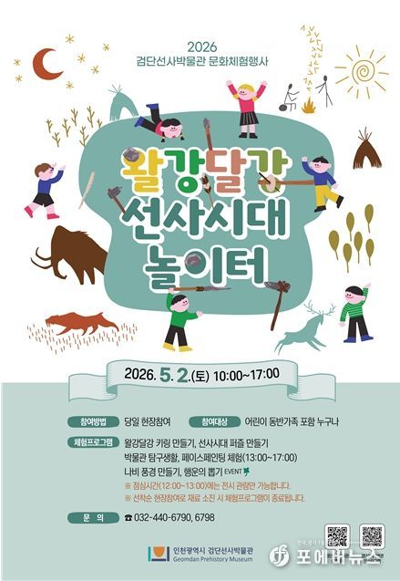 [ 포에버뉴스 김경순 기자 ] 인천광역시 검단선사박물관은 오는 5월 2일, 가정의 달을 맞아 어린이 문화체험행사 ‘왈강달강 선사시대 놀이터’를 개최한다고 밝혔다.