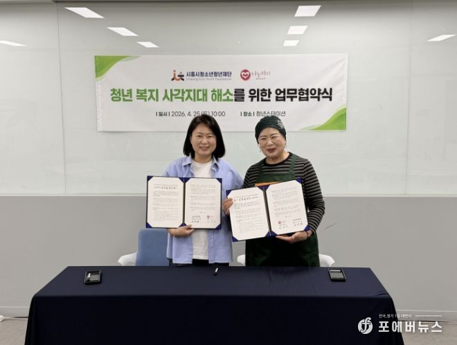 [ 포에버뉴스 김경순 기자 ] (재)시흥시청소년청년재단은 지난 4월 25일 나눔자리문화공동체와 지역의 청년 복지 사각지대를 해소하고 고립·은둔 청년 지원을 강화하기 위한 업무협약(MOU)을 체결했다고 밝혔다.