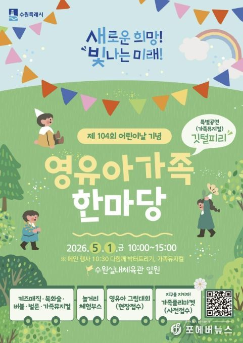 수원시 관계자는 “어린이날을 맞아 아이들이 즐겁게 뛰놀고 가족이 함께 소중한 시간을 보낼 수 있도록 행사를 준비했다”며 “영유아와 가족 모두에게 따뜻한 추억이 되는 하루가 되길 바란다”고 말했다.