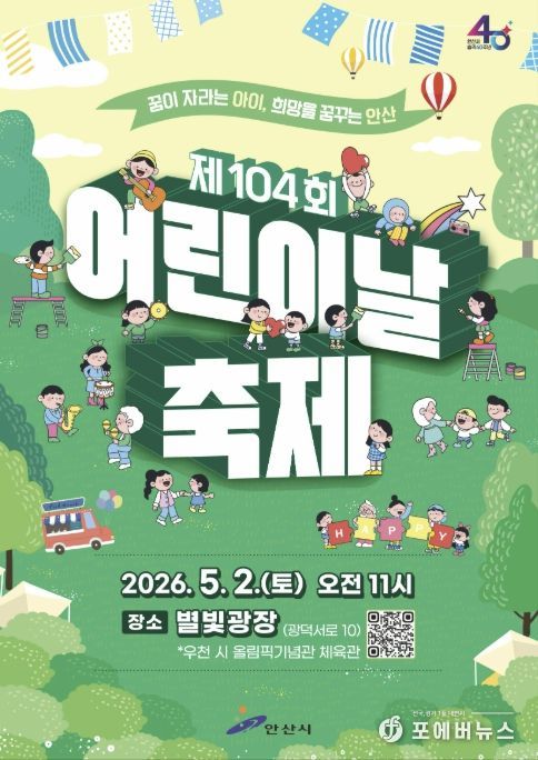[ 포에버뉴스 김경순 기자 ] 안산시는 다가오는 어린이날을 맞아 온 가족이 함께 즐길 수 있는 ‘제104회 어린이날 축제’를 별빛광장에서 개최한다고 28일 밝혔다.