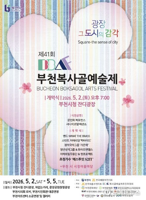 [ 포에버뉴스 김경순 기자 ] 부천시는 ‘제41회 부천복사골예술제’를 5월 2일부터 5일까지 4일간 부천시청 잔디광장과 중앙공원, 부천아트센터 일원에서 연다.